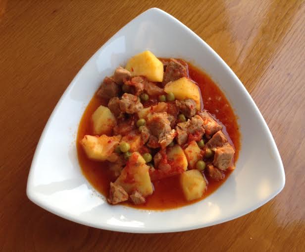 Yayvan bir tencereye hafif kızartılan patatesler yayılır. Üzerine sotelenen etli karışım yayılır. Bir bardak araka, acı biber tuz ilave edilir. Üzerine çıkacak kadar içerisinden etlerini çıkardığımız et suyu ilave edilerek patatesler yumuşayıncaya kadar pişirilir.